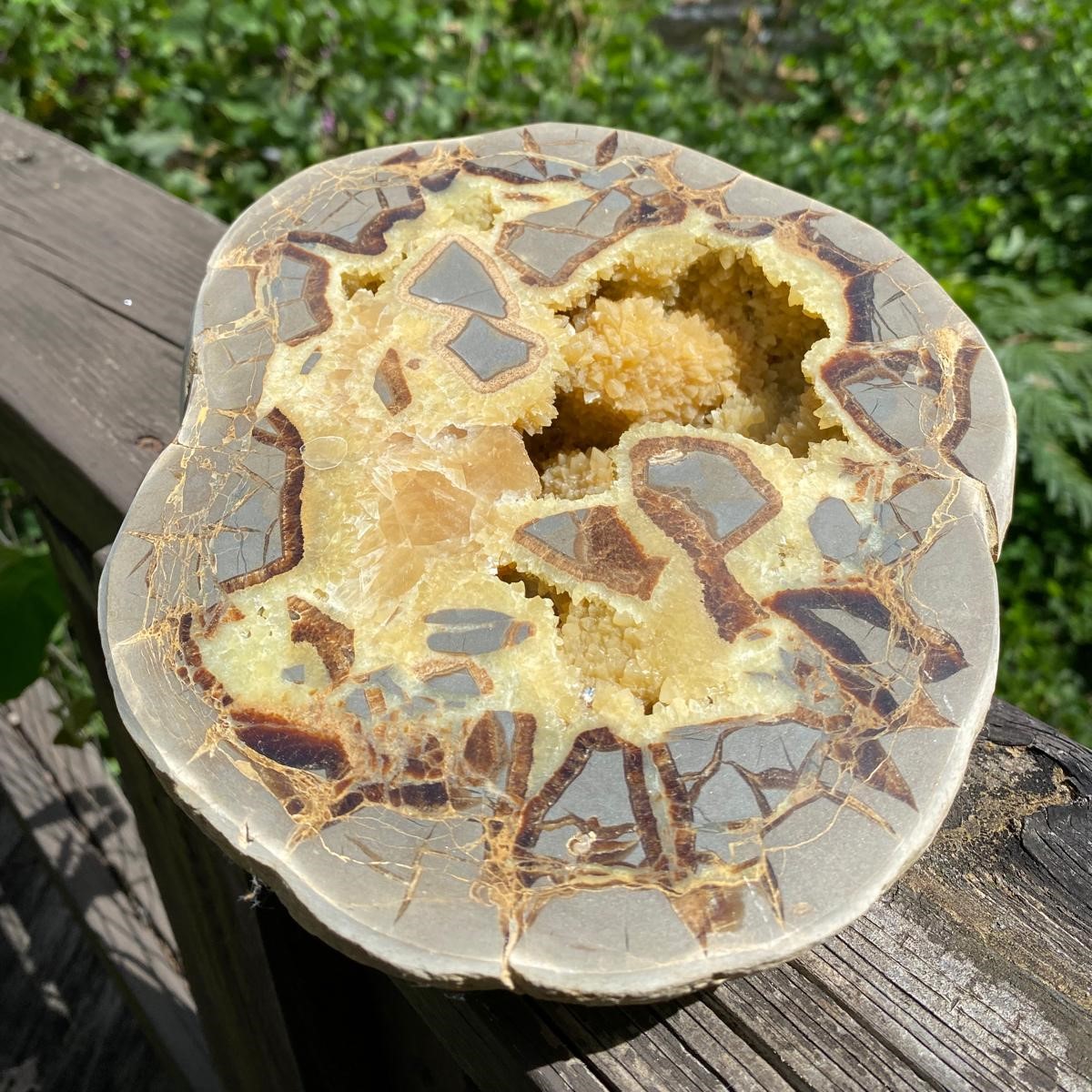 Septarian is also known as ‘Dragon Stone’ derived from an old Malagasy legend that said when the ‘Dragons’ died out they fossilized & became part of the sea bed that later became Septereye/Septarian & it is this formation that resembles the ‘Scales of Dragons’ !